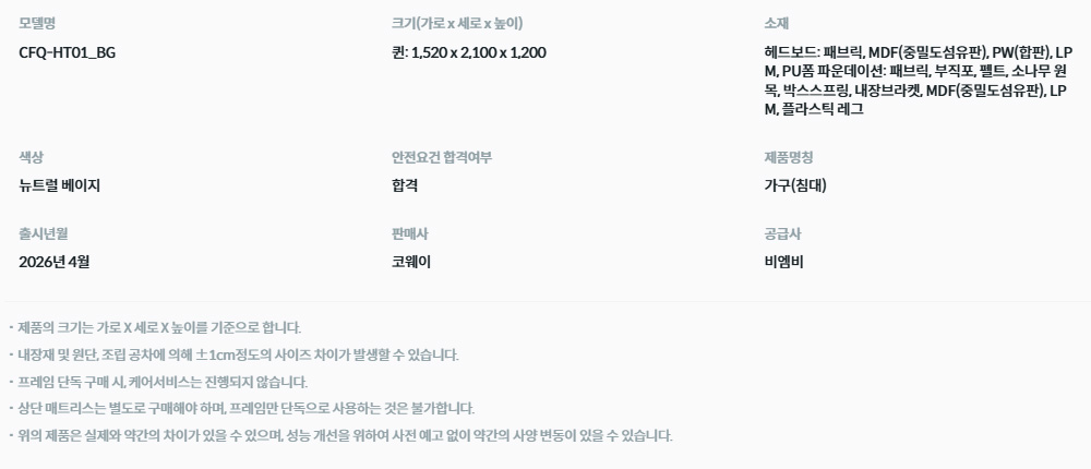 CFQ-HT01 BEREX 스위트 호텔 프레임 퀸 렌탈 자가관리 3년약정 하얀색 농협카드