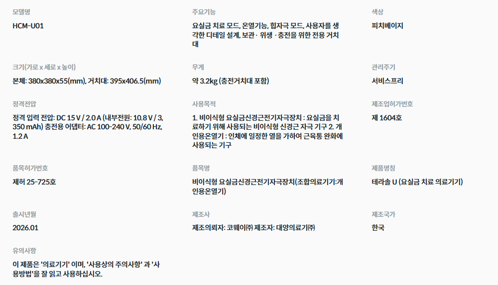 테라솔 U 요실금 치료 의료기기 HCM-U01